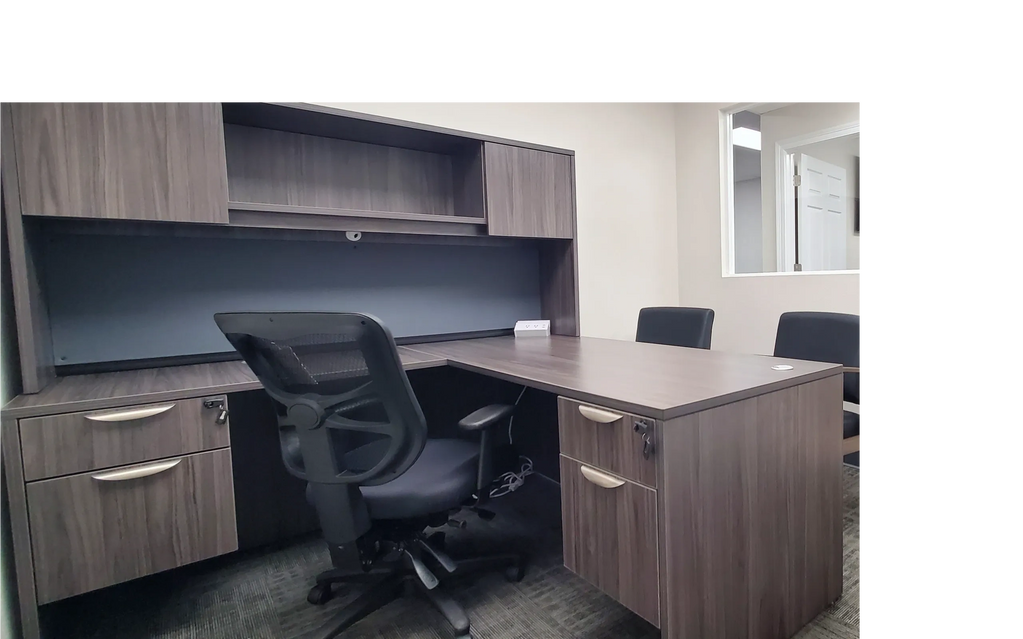Your office includes all furniture shown. Your private office will be keyed for private access and you will have an access code to the building for after hours access.